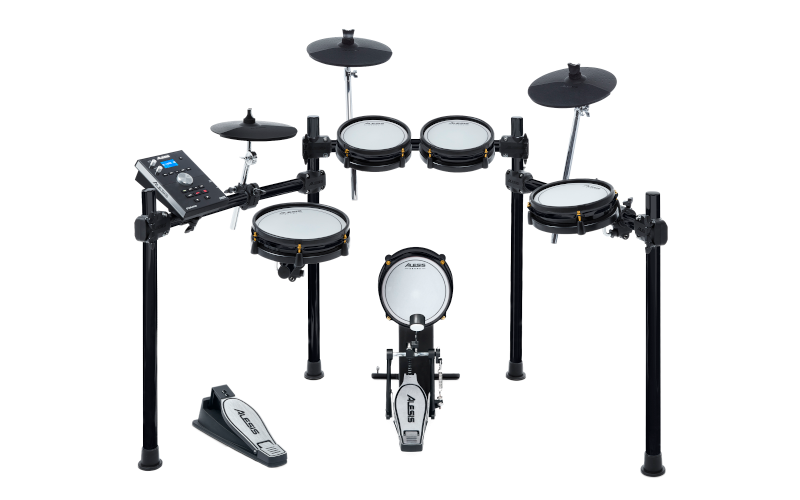 The latest Alesis drum kit features improved drumheads, real-time recording with 5 tracks internally or 99 via USB, 74 drum kits, 671 sounds, and 60 accompaniment tracks. Easily convert USB-stored WAV files to any pad for versatile performance.