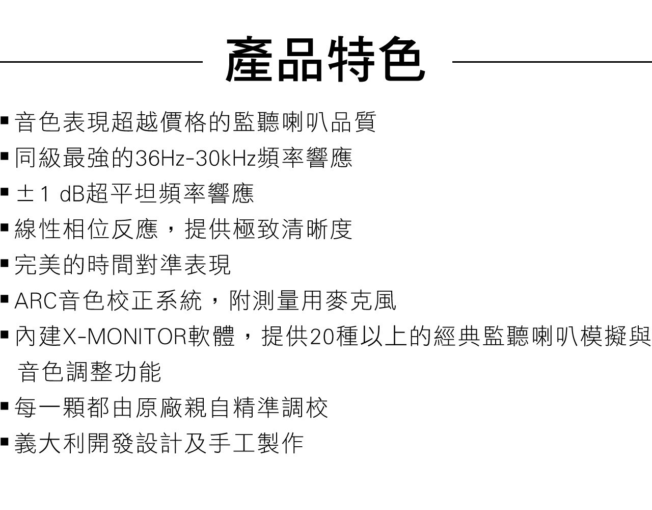 Experience superior sound quality with these Italian-designed and handcrafted reference monitors. They offer a remarkable 36Hz-30kHz frequency response and ±1 dB flatness for clarity. Featuring ARC tuning, X-MONITOR software, and precise factory calibration, they surpass expectat