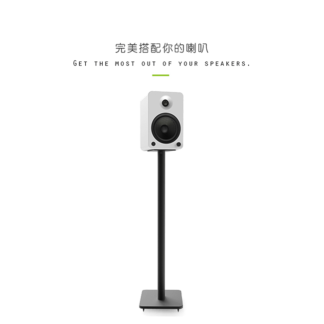 This product, from a Canadian brand, features a 15° swivel design and a steel structure with foam padding to minimize vibrations and provide stable support. It includes a universal stand suitable for 4-5.25 inch speakers and stands 81 cm tall.