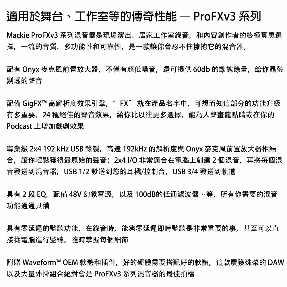 Equipped with an Onyx mic preamp and GigFX high-res effects engine, this mixer offers professional 2x4 192 kHz USB recording, zero-latency monitoring, and built-in compression. It includes Waveform™ OEM software and plugins, enabling seamless computer mixing and transfer.