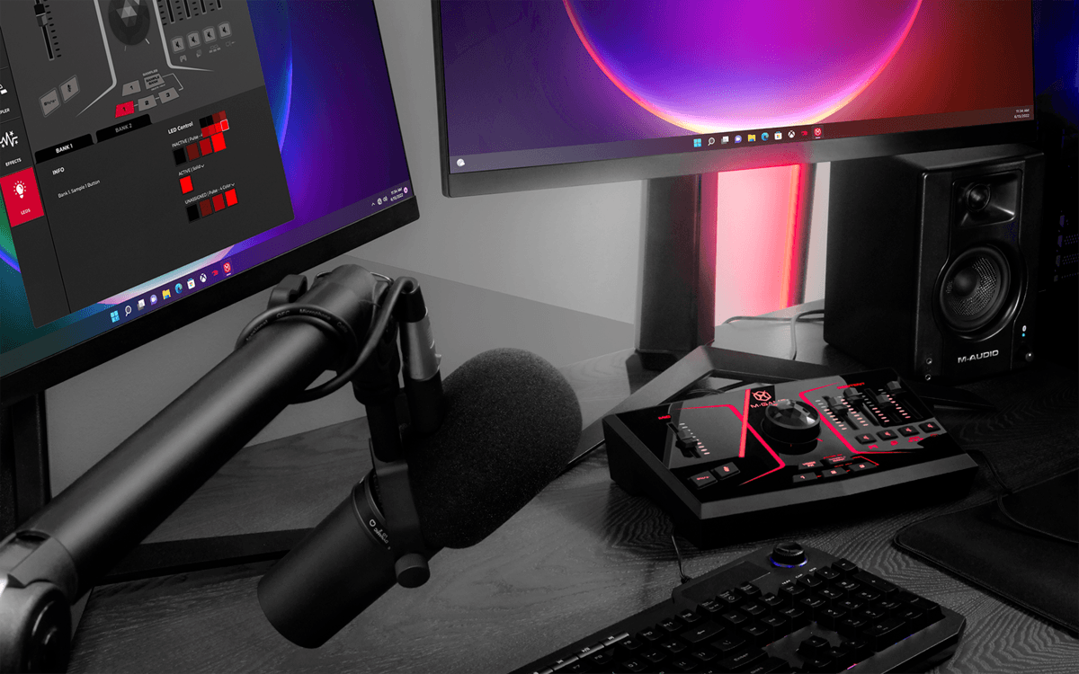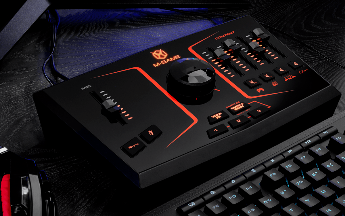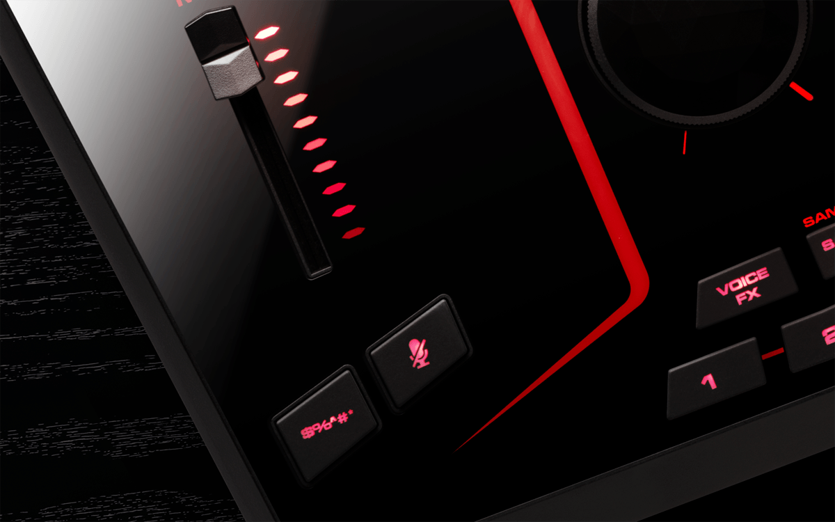 This product features customizable LED lighting to create various atmospheres, streams audio from devices to live platforms, and offers a control panel to adjust multiple audio sources' volume, balance, and effects. Its built-in sampler adds music, sound clips, or effects to your streams.