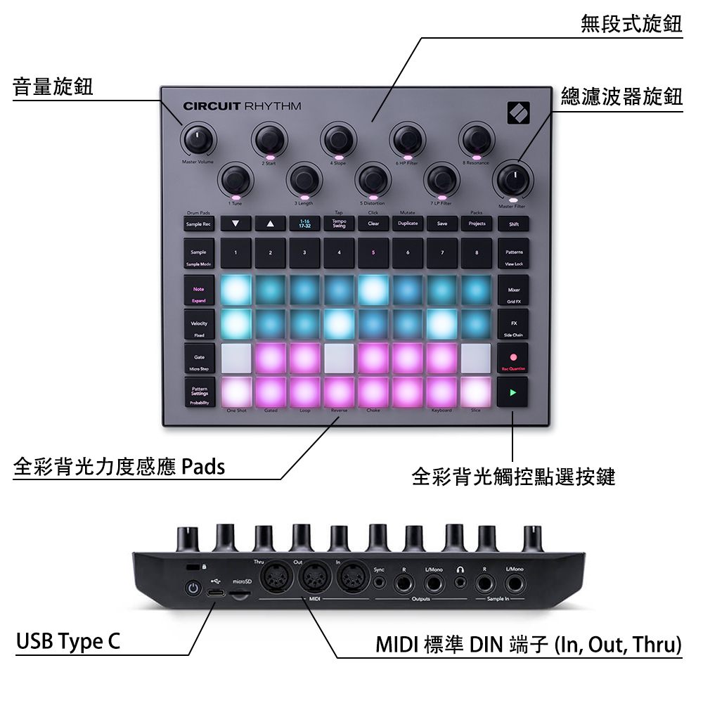This versatile sampler features a built-in rechargeable battery and can layer up to eight sample tracks simultaneously. Ideal for creating and performing beats, it allows easy recording, editing, and sound processing directly on the device.