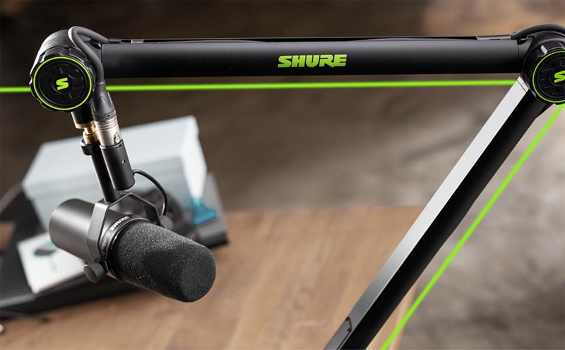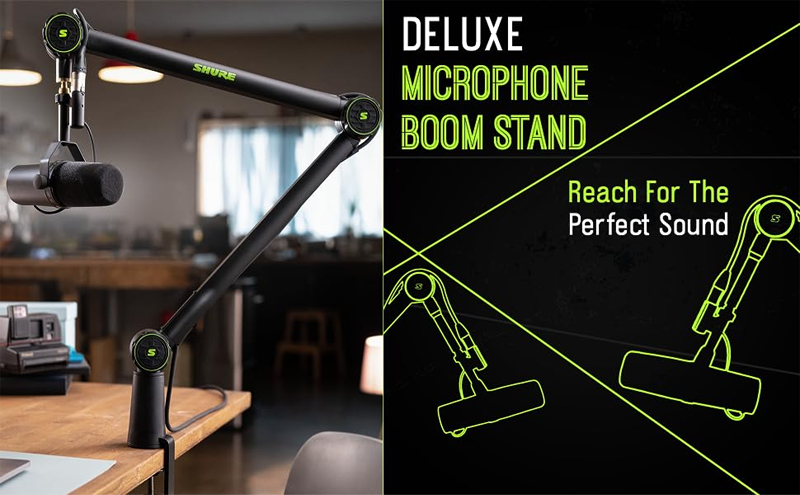 This product is a versatile microphone stand, compatible with various professional microphones and suitable for all standard shock mounts. Ideal for broadcasting, podcasting, and live streaming, it can easily clip onto desks up to 5.5cm thick. It features a 360-degree silent rota