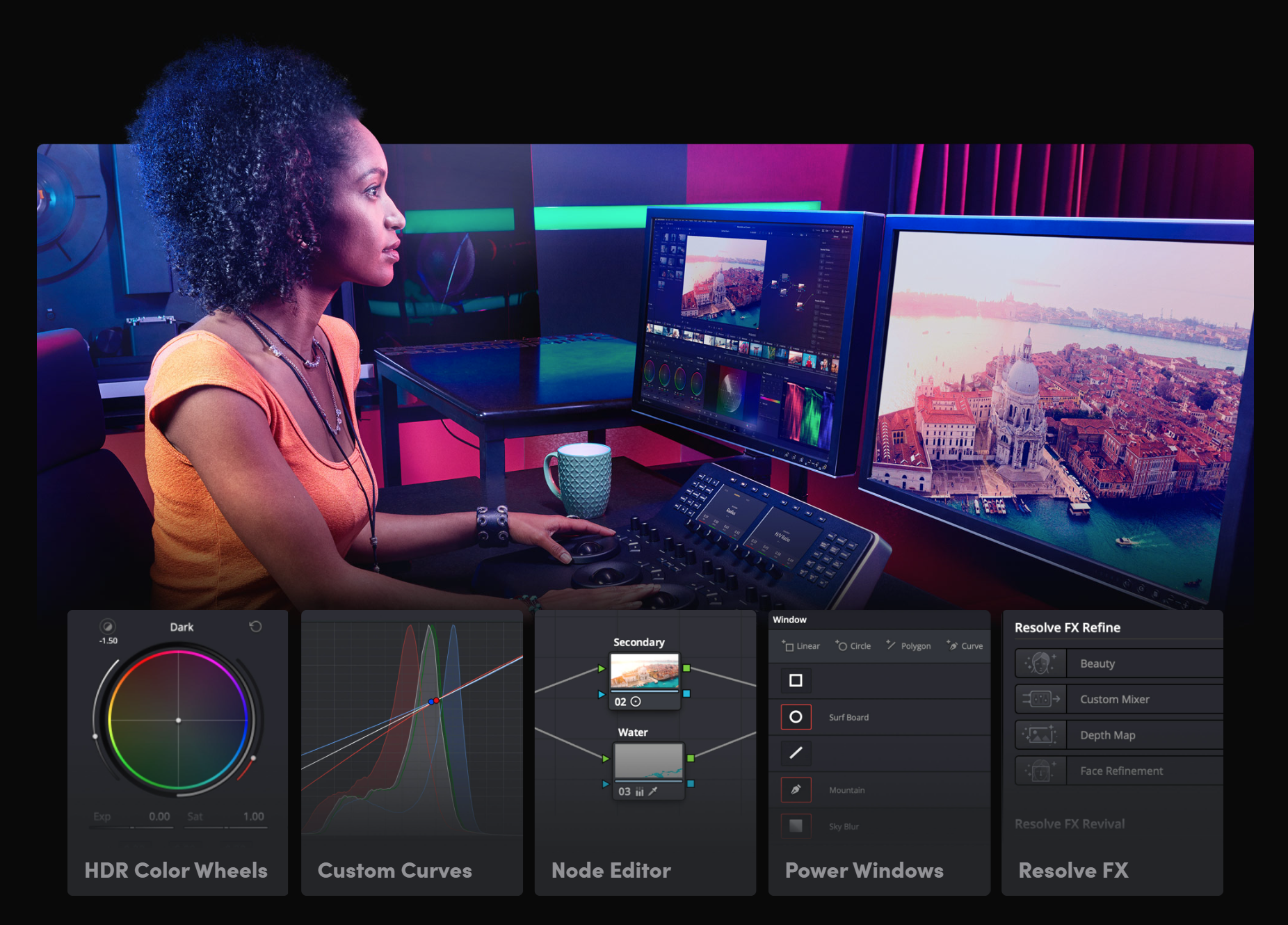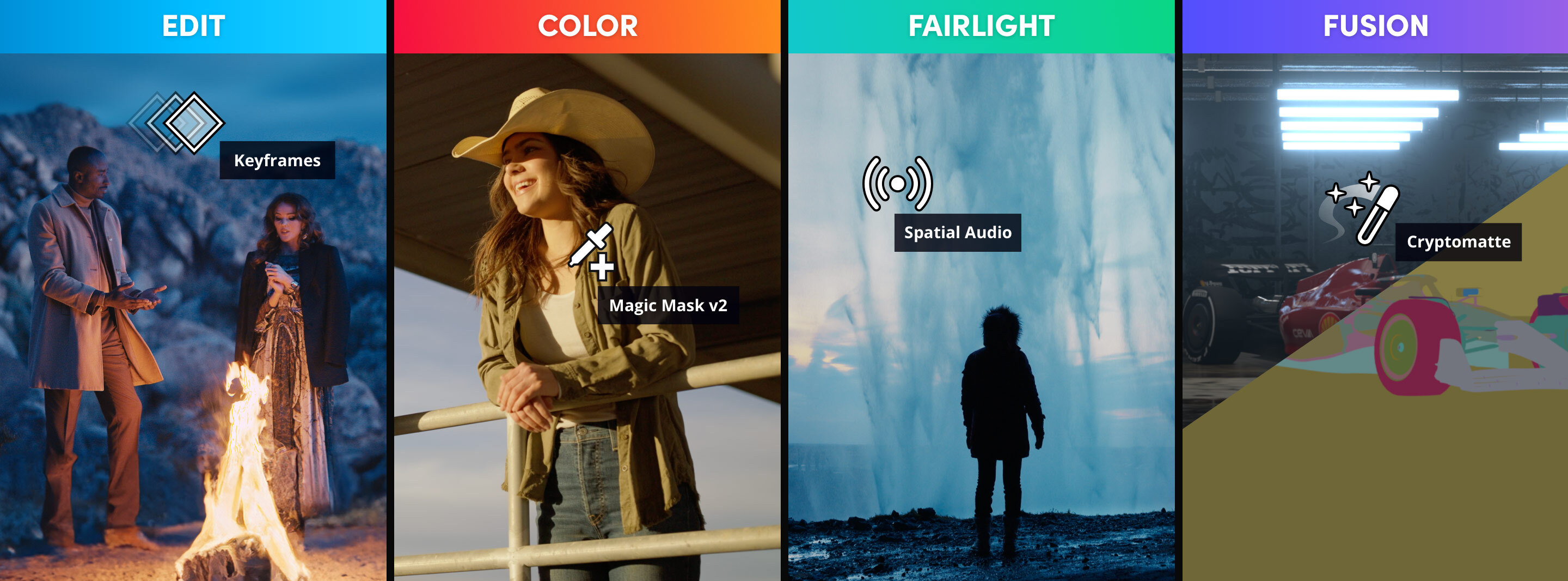 在專業長片與電視節目製作中,DaVinci Resolve 是最受信賴的後製工具,擁有無可比擬的影像品質與創意功能。內建榮獲艾美獎的影像處理技術、32-bit 浮點運算、專利 YRGB 色彩科學,並完整支援 HDR 與超廣色域。音訊部分搭載 Fairlight 引擎,提供頂尖音質。現在,你也能使用專業影像與聲音工作者愛用的工具,打造電影等級的高水準作品。