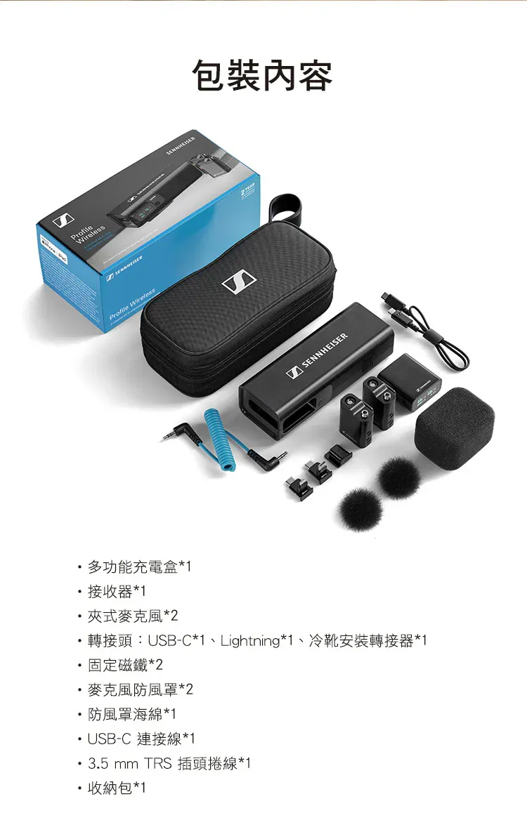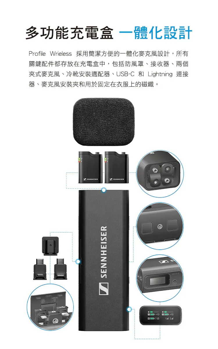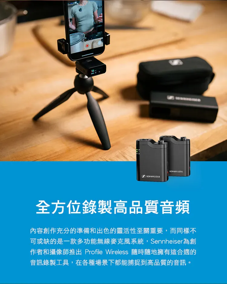 Sennheiser Profile Wireless 為創作者與直播打造的專業無線麥克風,重視人聲還原與低延遲連線,具直覺增益與靜音控制、基本監聽與多種輸出介面,便攜耐用並可搭配防風配件,適合直播、Podcast、線上教學與外景錄音使用。