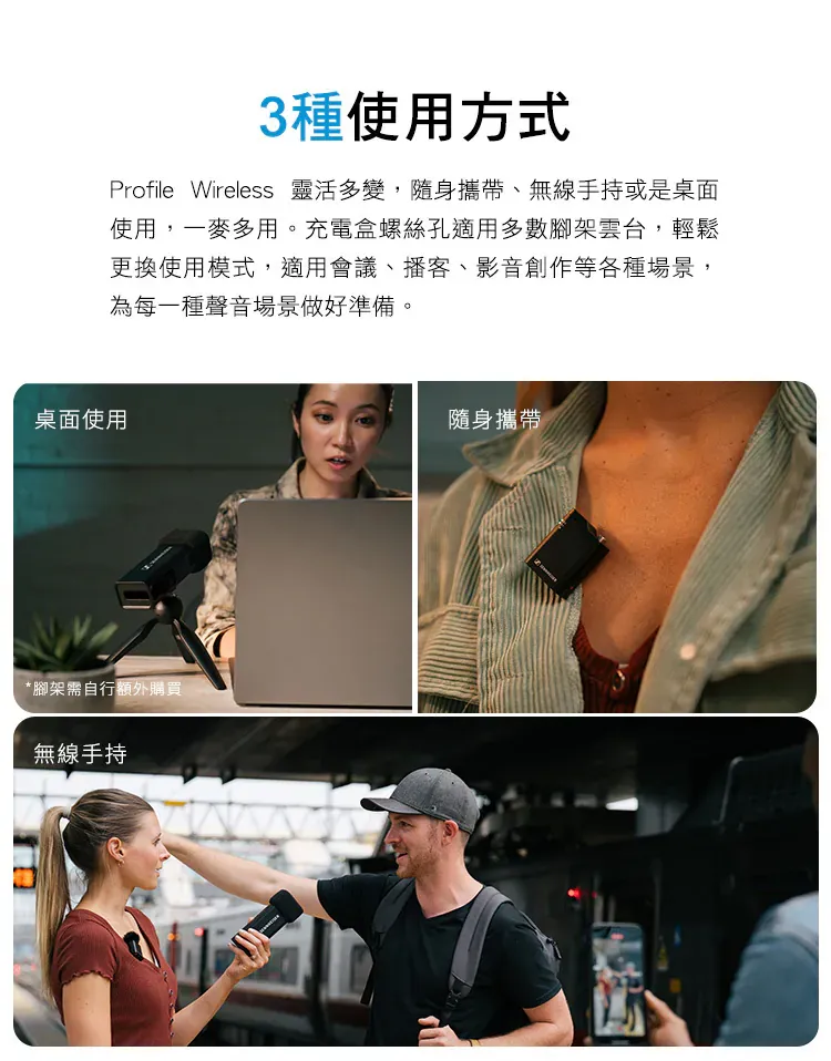 Sennheiser Profile Wireless 將品牌對人聲清晰度的追求與無線自由度結合,針對直播、Podcast、線上課程與行動錄音而設計。以直覺操作與穩定連線為核心,協助內容創作者快速完成設定,在各種場景中專注呈現自然、乾淨的聲音表現。