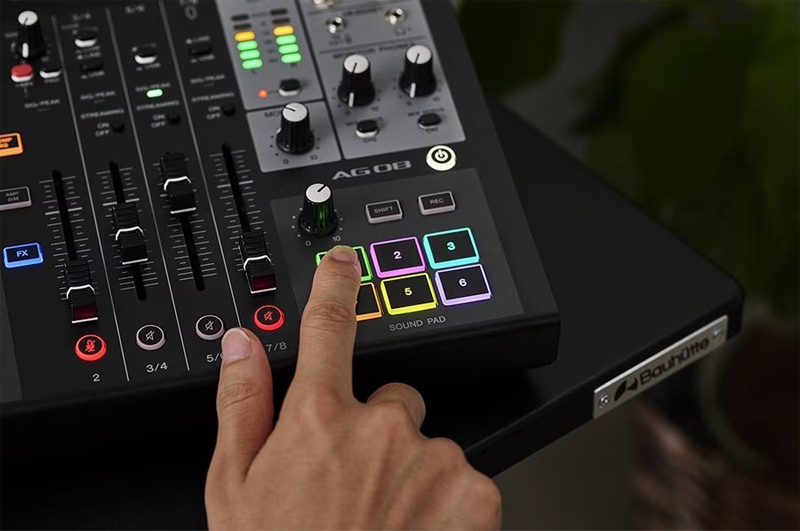 | 輸出 | 2 組耳機輸出(可同時使用) MONITOR 輸出(XLR + TRS) MIX 輸出(TRS) CH7/8 為 4 極 TRRS 迷你輸出 6 顆音效鍵可即時觸發音訊取樣 支援腳踏開關輸出控制 |