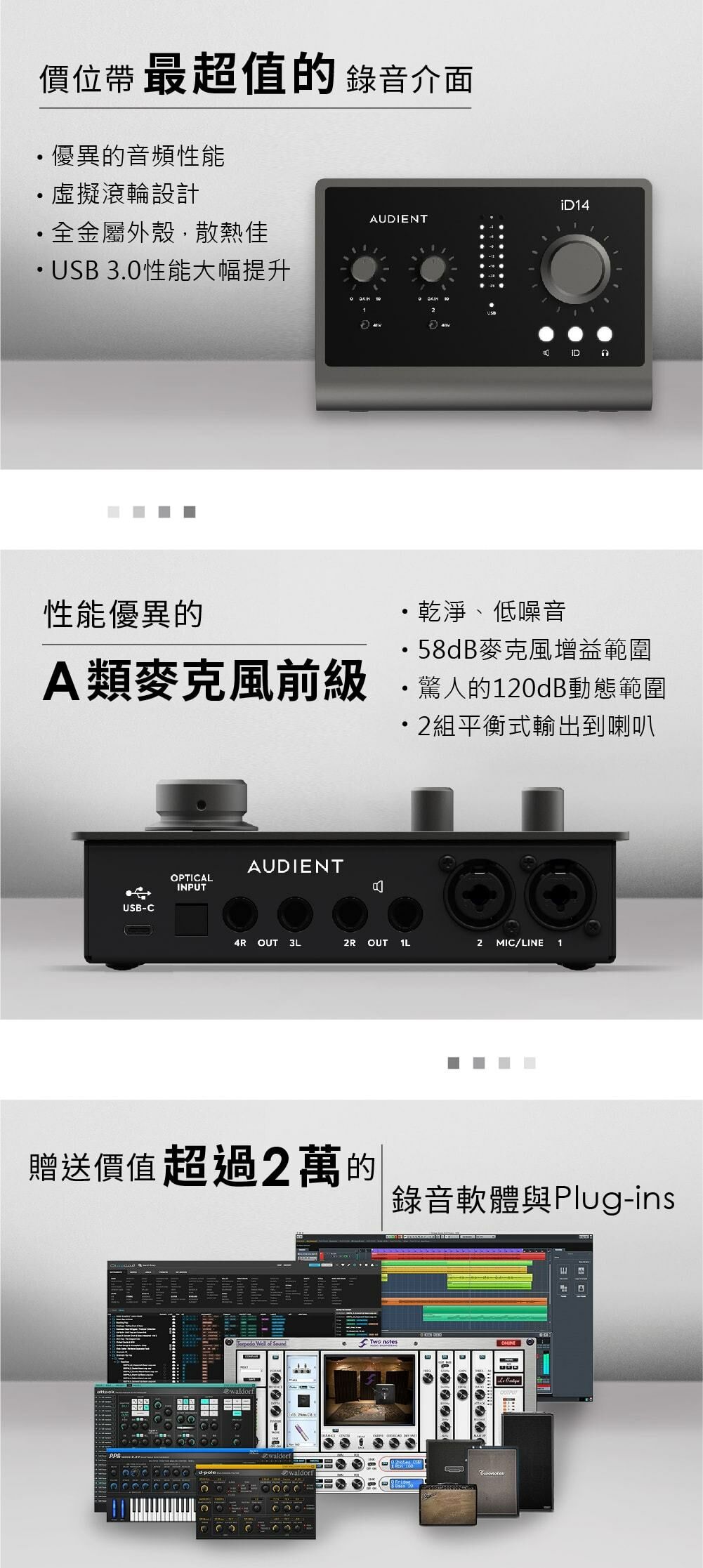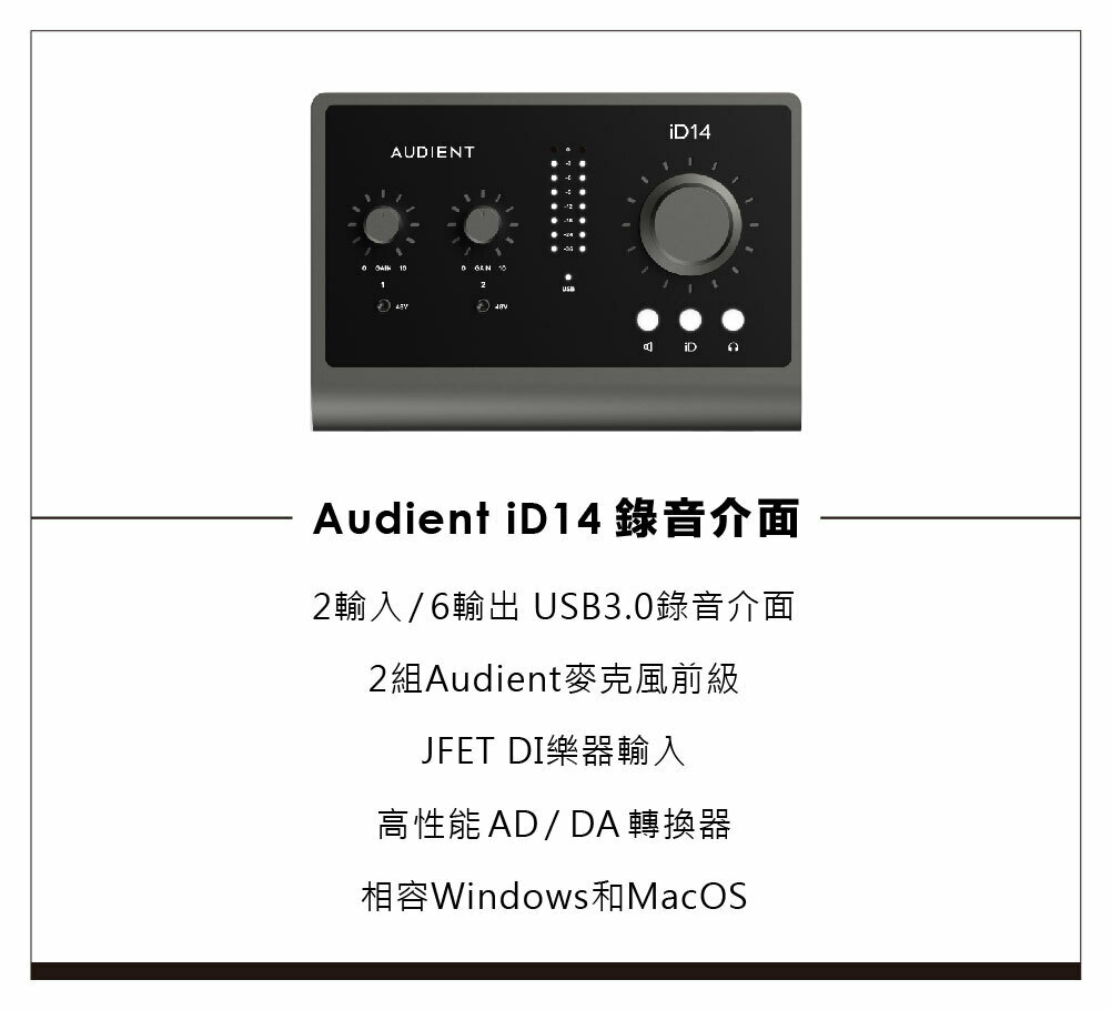 | 麥克風前級 | Audient Class-A*2 |