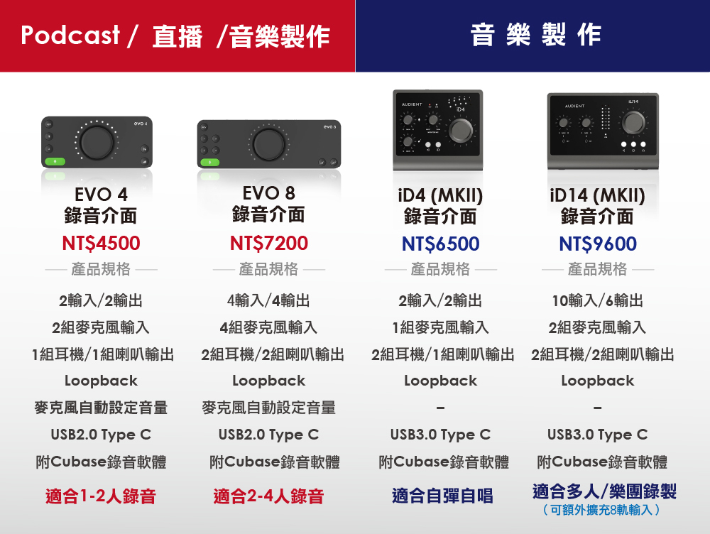 | 配件 | Type-C連接線一條、Cubase錄音軟體 |