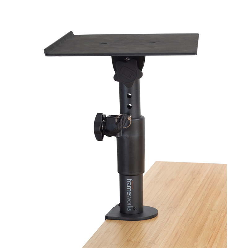 305 x 229mm的平台附有防滑橡膠墊,可止滑及避免刮傷喇叭,257~353mm的伸縮高度及可調校0~15度的傾斜角,提供全方位最佳的聆聽位置;適合放置喇叭、手提電腦(Macbook air&pro適用)、投影機或小型混音器等各式器材。