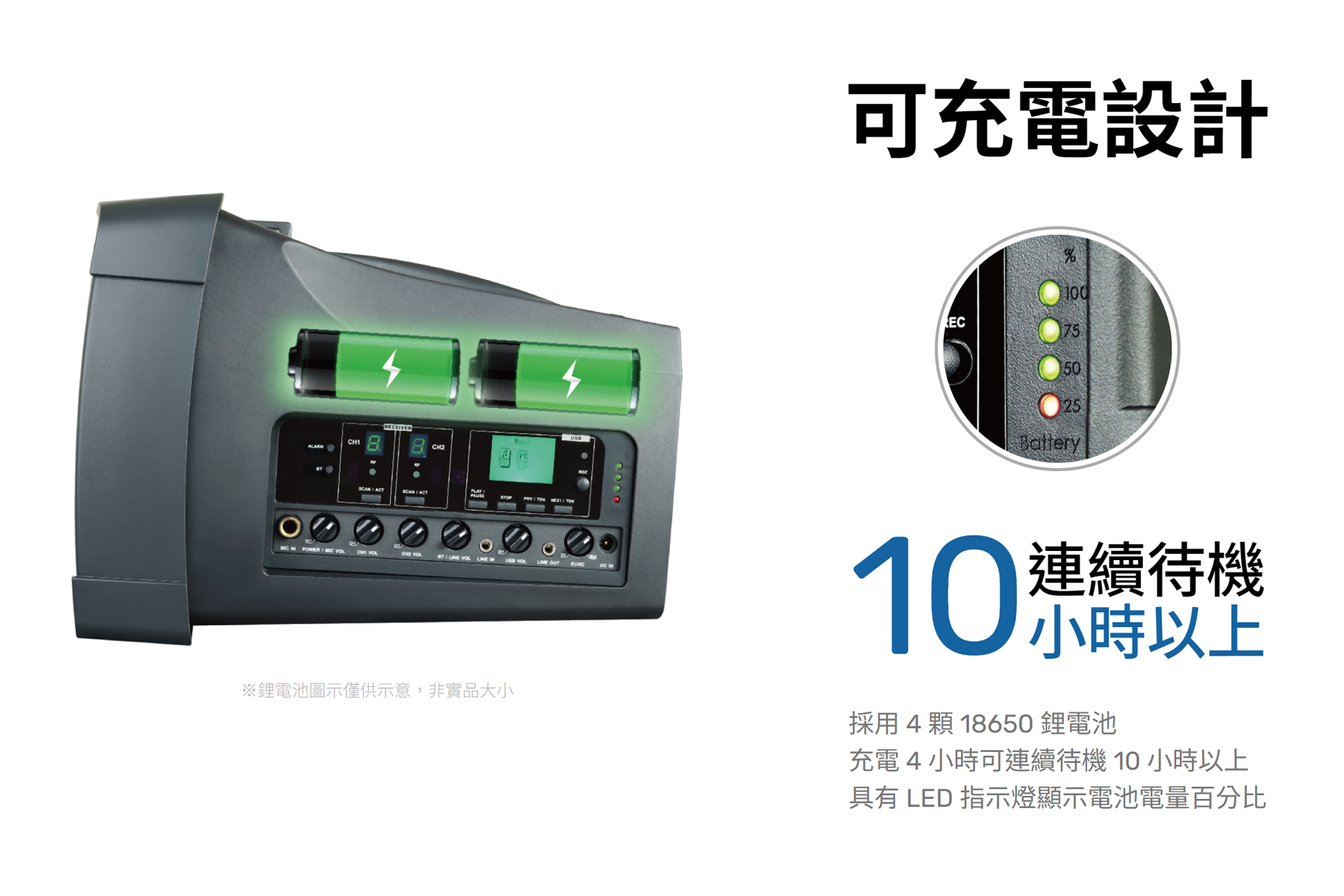 | 充電電池 | 18650鋰離子電池 × 4 (MB-14) |