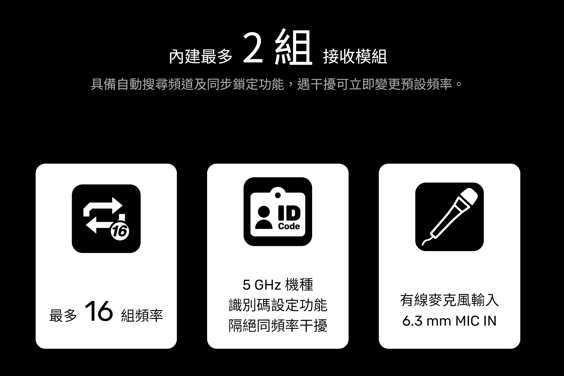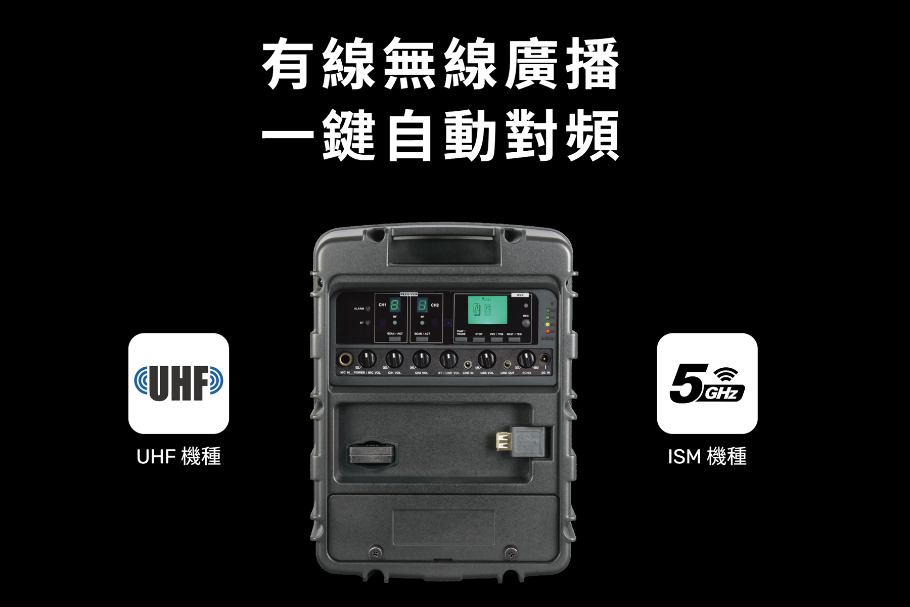 | 接收模組 | 內建2組 UHF或 ISM 頻段 |