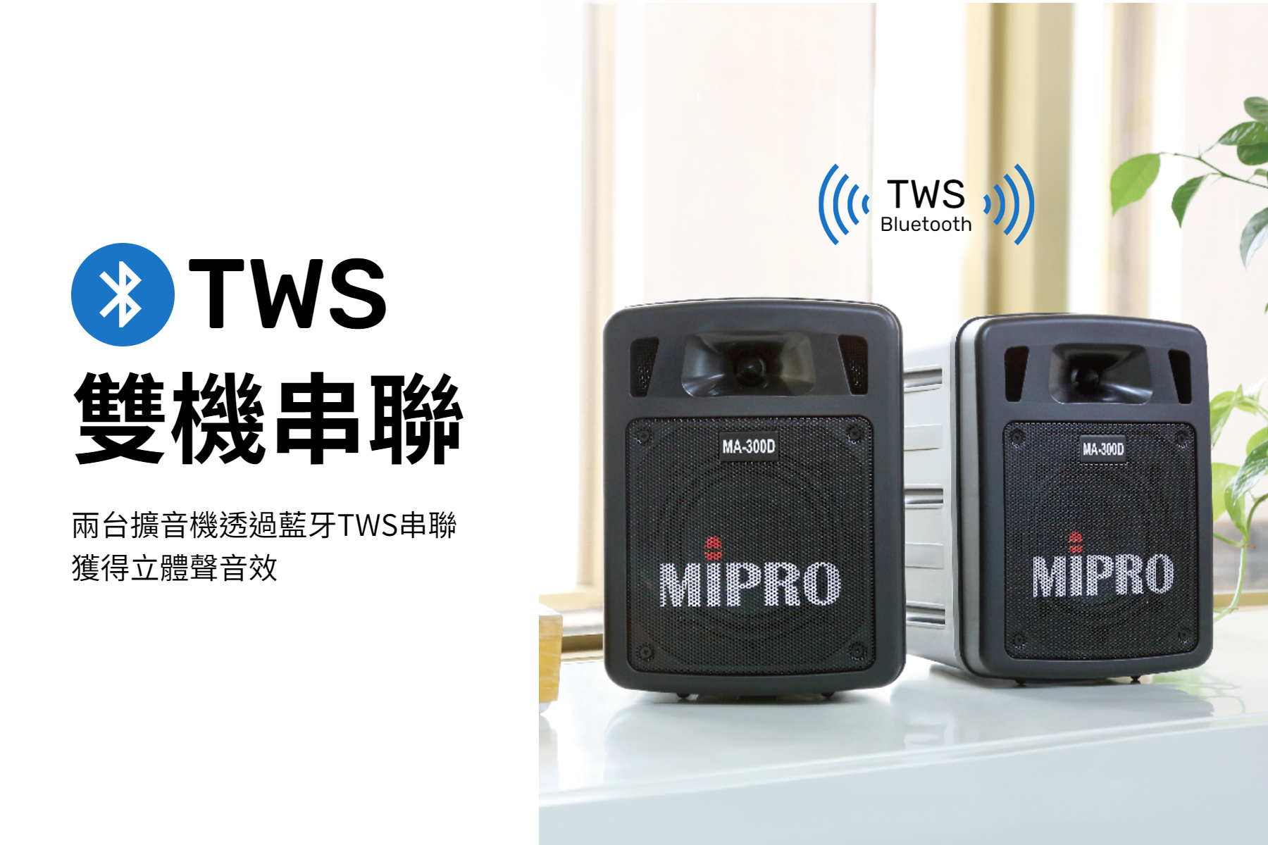 .運用TWS無線串聯技術可使兩台擴音機組合成一對立體聲音響