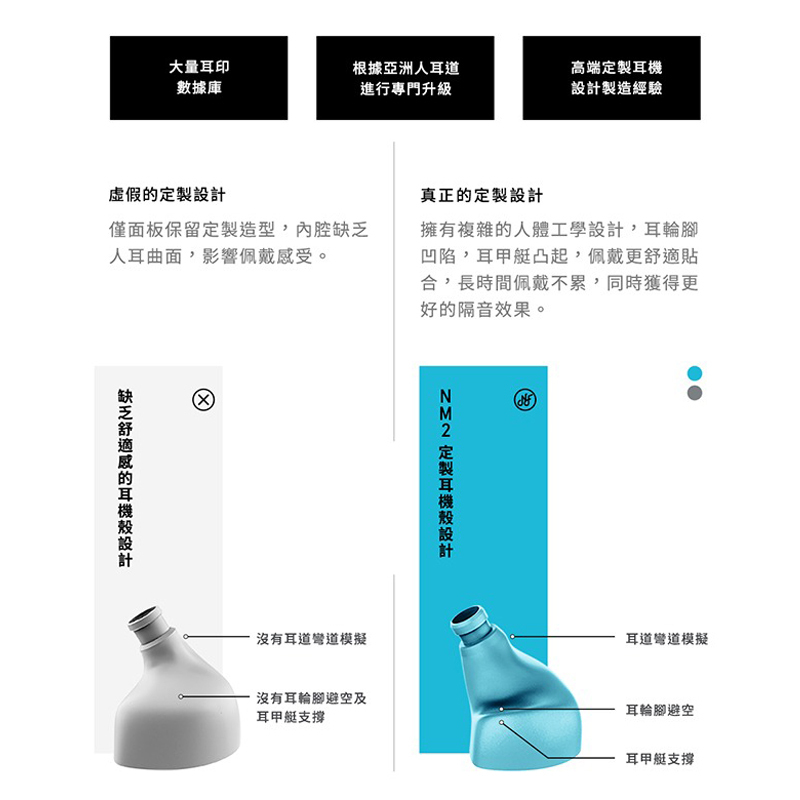 .擁有複雜的人體工學設計,佩戴更舒適貼合,同時獲得更好的隔音效果