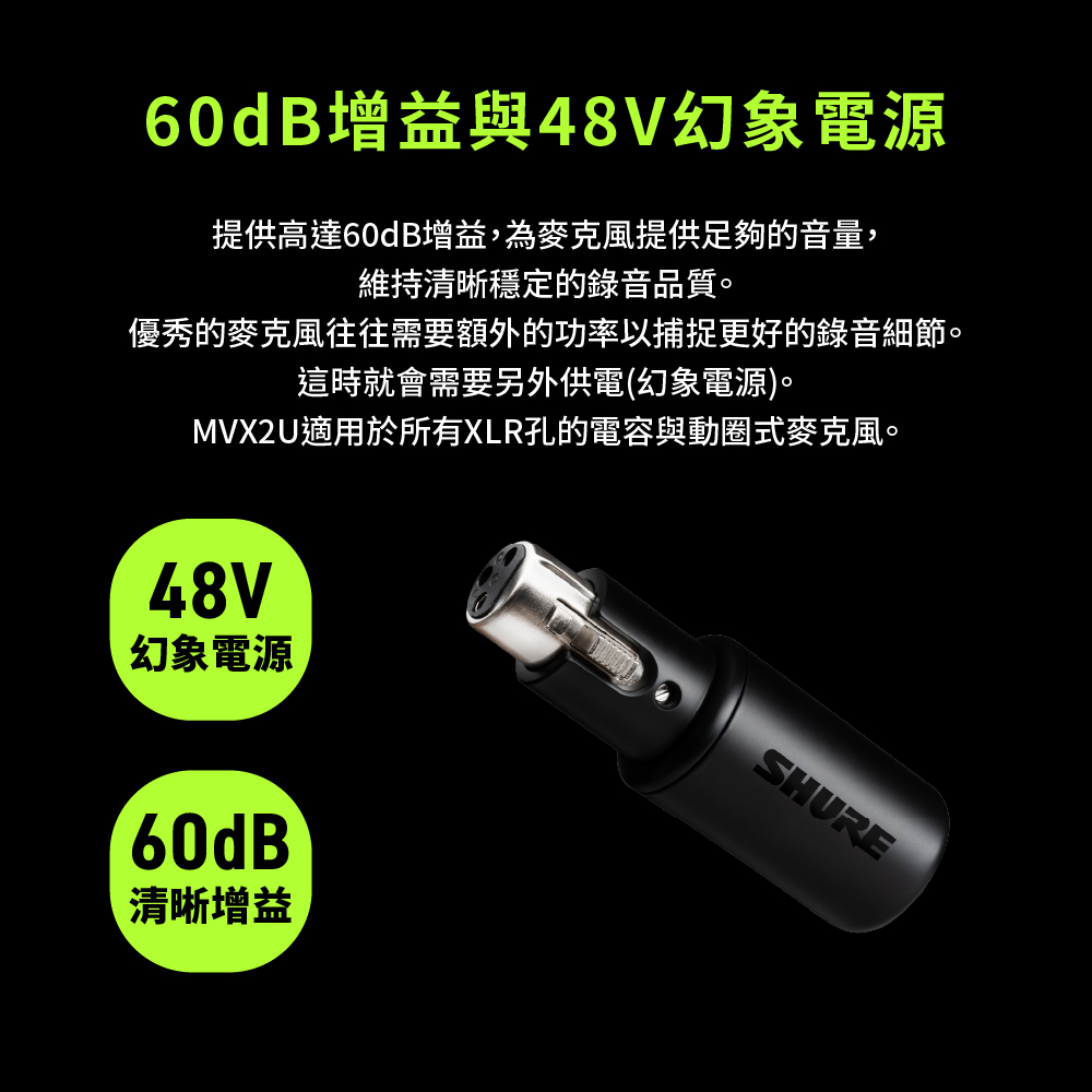 .為電容麥克風提供 48V 幻象電源