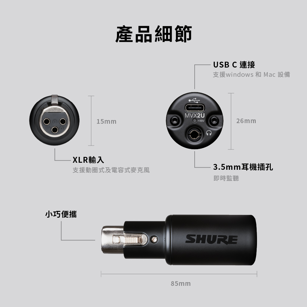 | 輸入 / 輸出 | XLR / Type-C |
