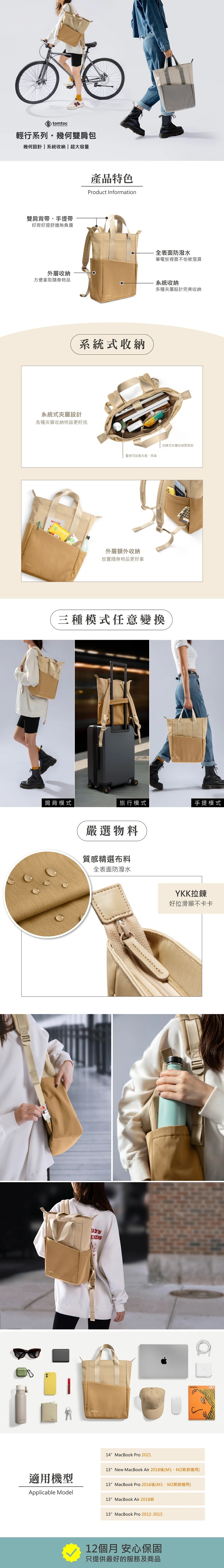 .雙肩背帶、手提帶,好背好提舒適無負擔