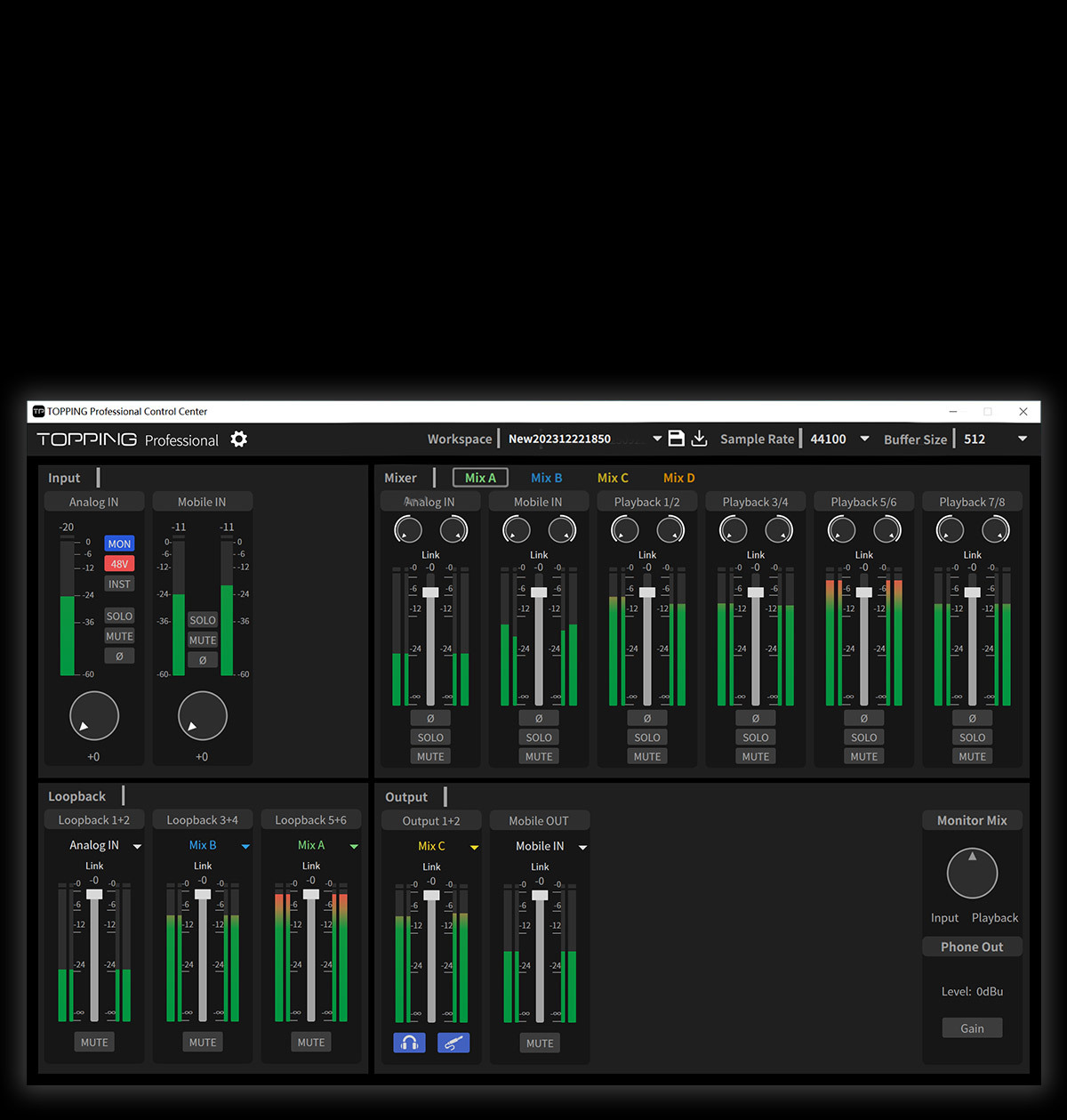• Topping Control Center: Exclusive control software for detailed routing and mixing settings (download from official website).