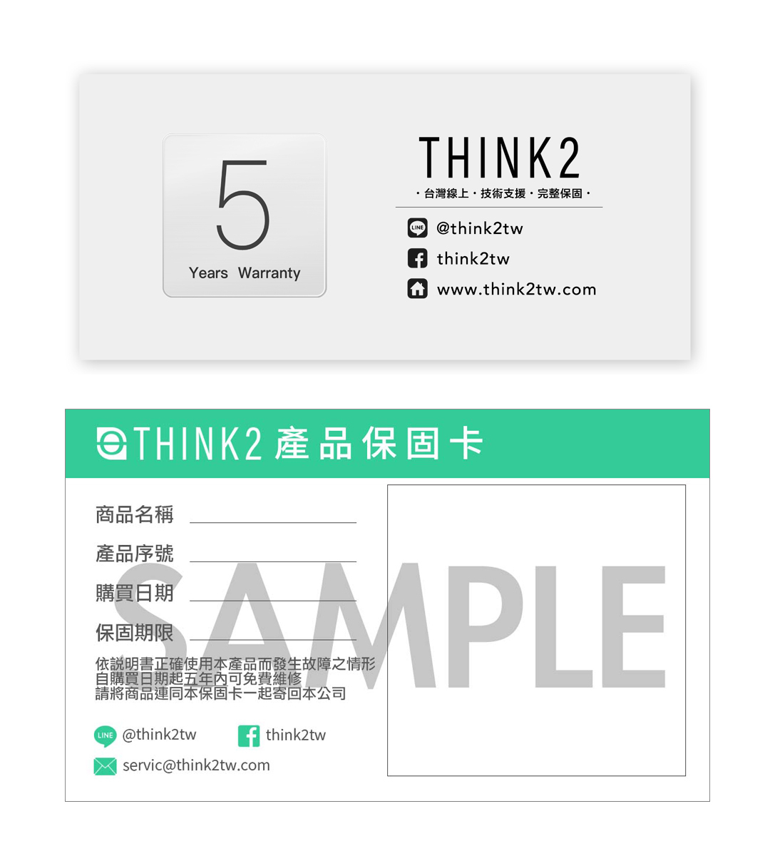 ※ 出貨時效以工作日計算;逢例假日或不可抗力因素將順延。實際保固條款以原廠公告為準,THINK2 提供整合與代辦協助。