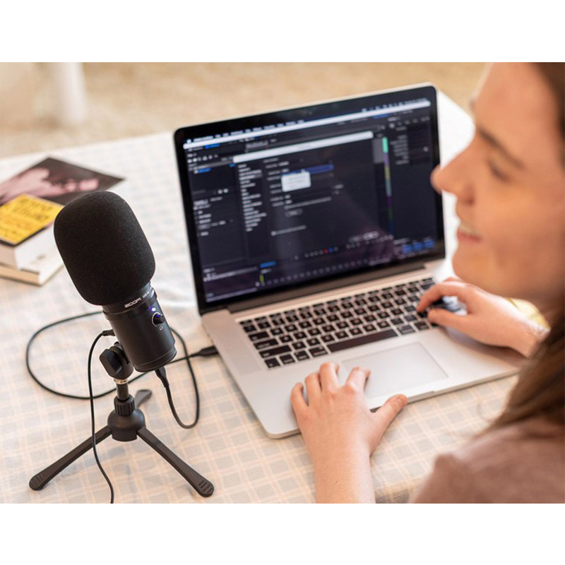 This product offers warm, smooth broadcast-quality sound with built-in headphone monitoring, a dedicated volume knob, and high-resolution 24-bit/96kHz sampling. It includes a tripod, windscreen, and cables, and is plug-and-play compatible with Mac and PC.