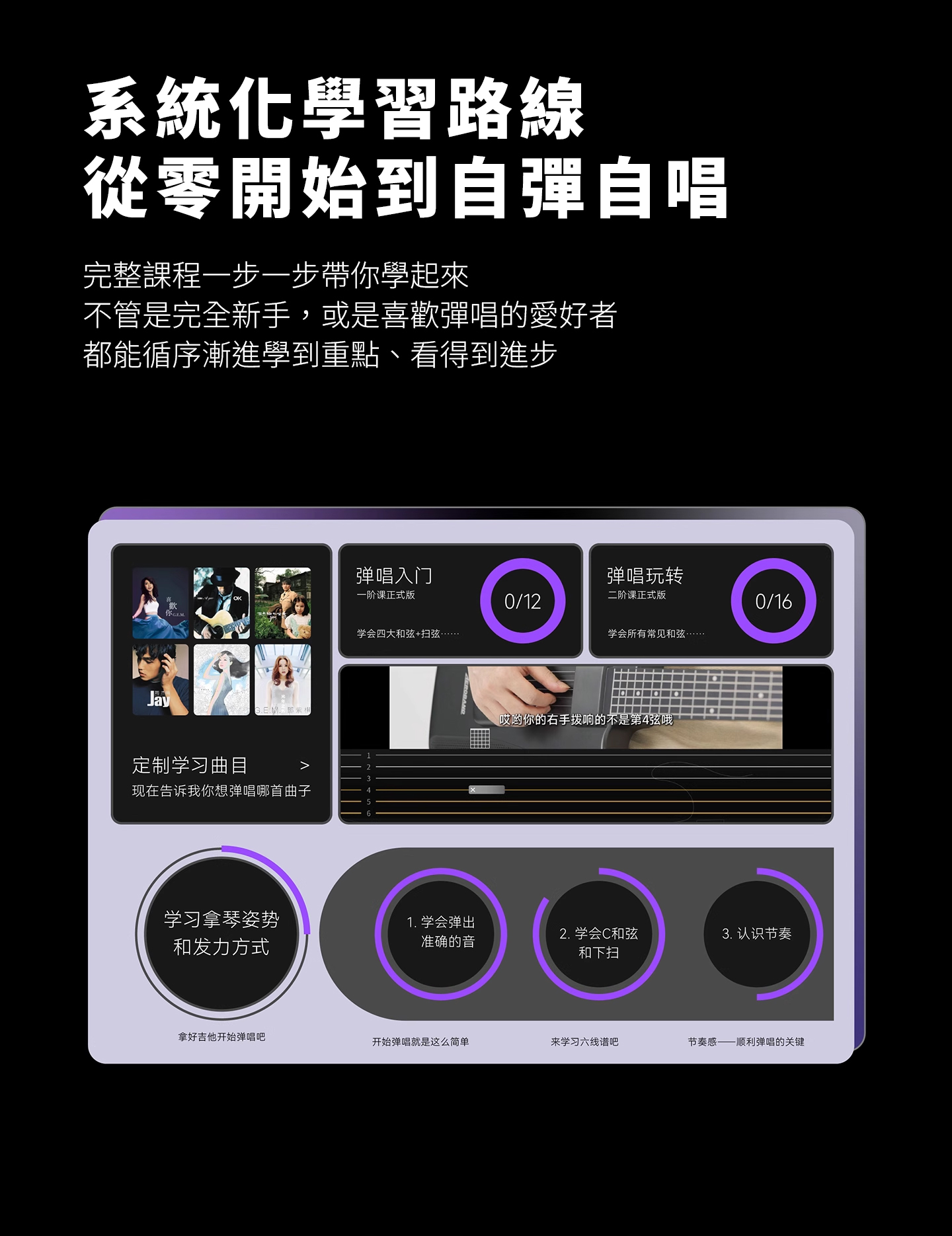 .專屬 App 內建流行歌單,自彈自唱超輕鬆