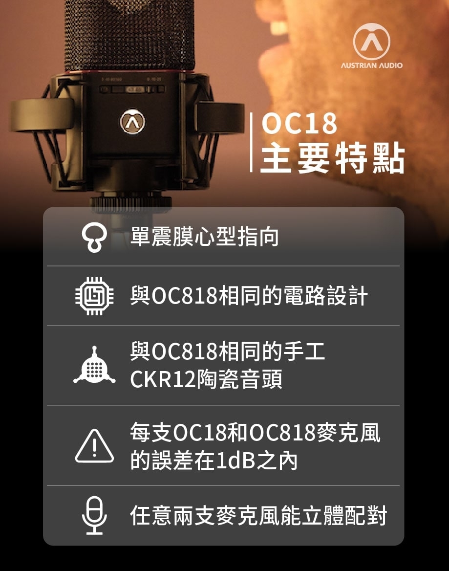 .可直接與任何其他OC18或心型指向的OC818配對,誤差小於1dB