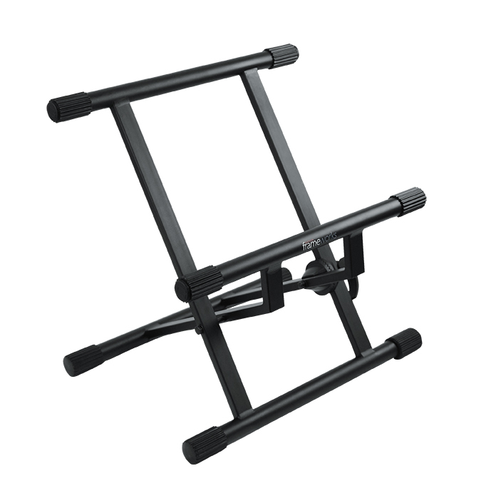 採用輕巧且堅固耐用的重型鋼製成,最大荷重可達80公斤,特殊設計的後傾角度可容納多數的音箱並方便調校音色,安全便利的齒稐鎖定板手,易於調整與收合架子。