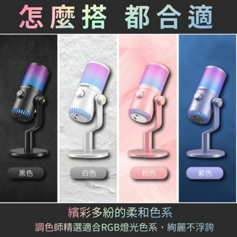 .產品內含:USB 麥克風 * 1、USB-B 轉 USB-C 線材 * 1、桌面支架 * 1、說明書 * 1
