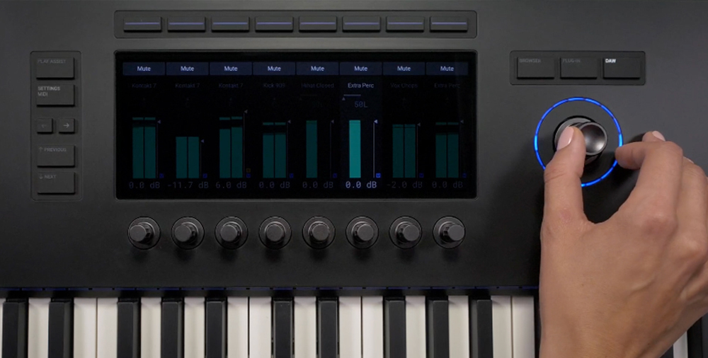 第三代 Komplete Kontrol S 系列主控鍵盤是一款先進的 MIDI 鍵盤控制器,提供三種尺寸可供選購。你可以快速直觀的連接到你想使用的軟體音源、效果器以及 DAW 音樂製作軟體中,並使用高解析的螢幕進行導航瀏覽。其可選購 49 鍵與 61 鍵半配重鍵盤,以及 88 鍵全配重琴錘運作的仿真鋼琴鍵,所有鍵盤均配備有複音觸鍵後感應(Polyphonic Aftertouch)功能。