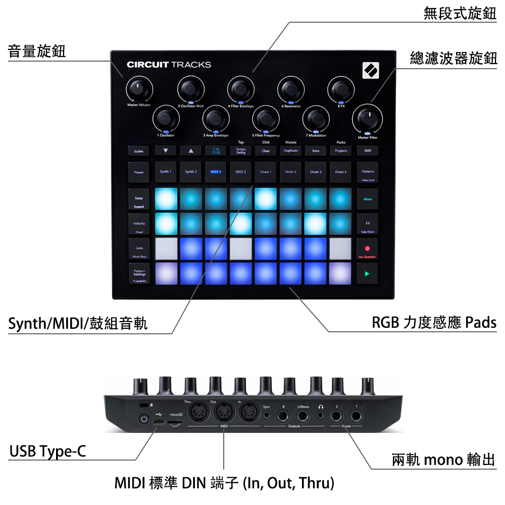 .兩軌 synth,兩軌 MIDI 以及四軌鼓組