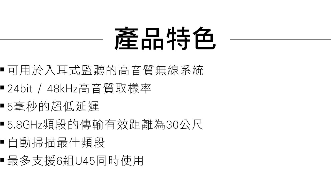 .最多可同時使用 6 組 U45 系統,團隊成員可各自擁有專屬耳機監聽