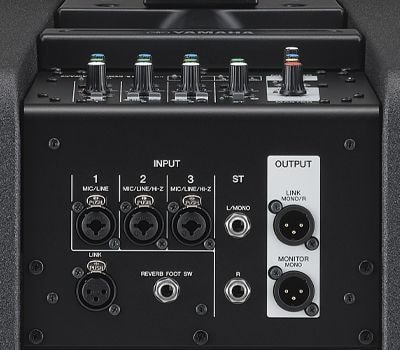 在這個大小的PA系統中有最出色的彈性。5 聲道數位混音機,具備三軌單聲道麥克風 / 線路輸入和立體聲輸入,單聲道軌其中兩單聲,具備 Hi-Z高阻抗 連接功能,可直接連接電木吉他和其他樂器。另外還有3.5mm耳機孔立體聲連接,支援使用藍牙裝置播放以及樂器、CD、電腦和智慧型手機等各種輸入來源。